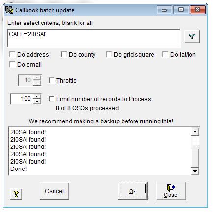 To fix the FCC web site callbook, please go to tools/advanced/database commands. Type: