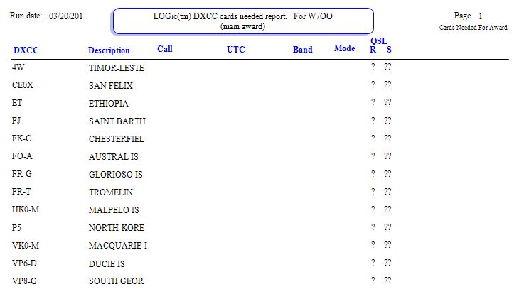 The Mixed WORKED - NO QSL RECEIVED means that you will have a line associated with a country somewhere in the report that has only 1 or more Ws on it. No Requesteds or Fulfilleds on any band.